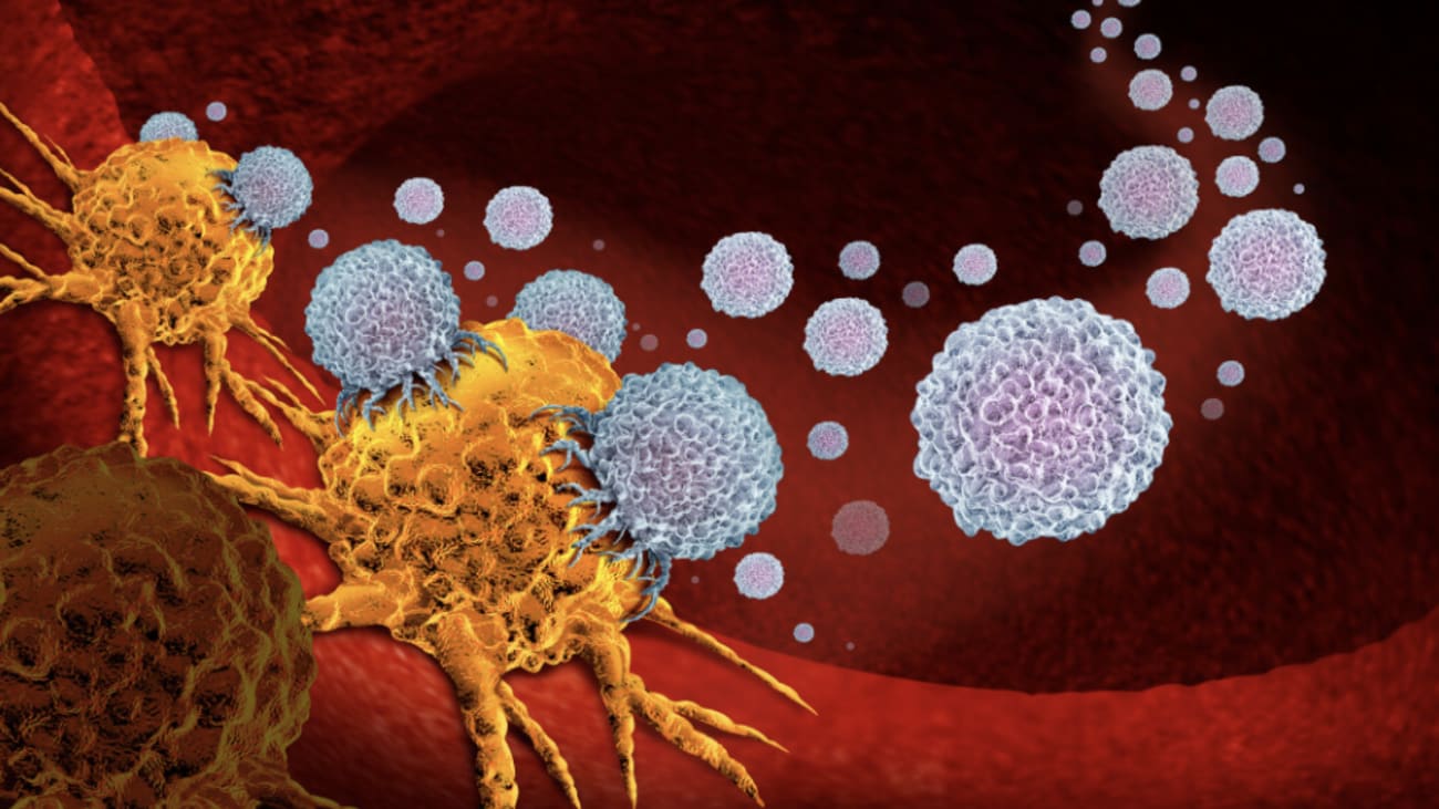 Cancer vaccines, including those for prostate cancer, work by stimulating immune system cells (shown in blue) to attack cancer cells in the body.