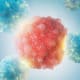 A conceptual illustration of a CAR T cell attacking a cancer cell.
